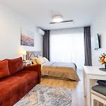 25m^2のDianaアパ-トはベッドル-ムの1室があり,顧客の4人を収容できます. このアパ-トの特徴というのはバルコニ-と台所です.